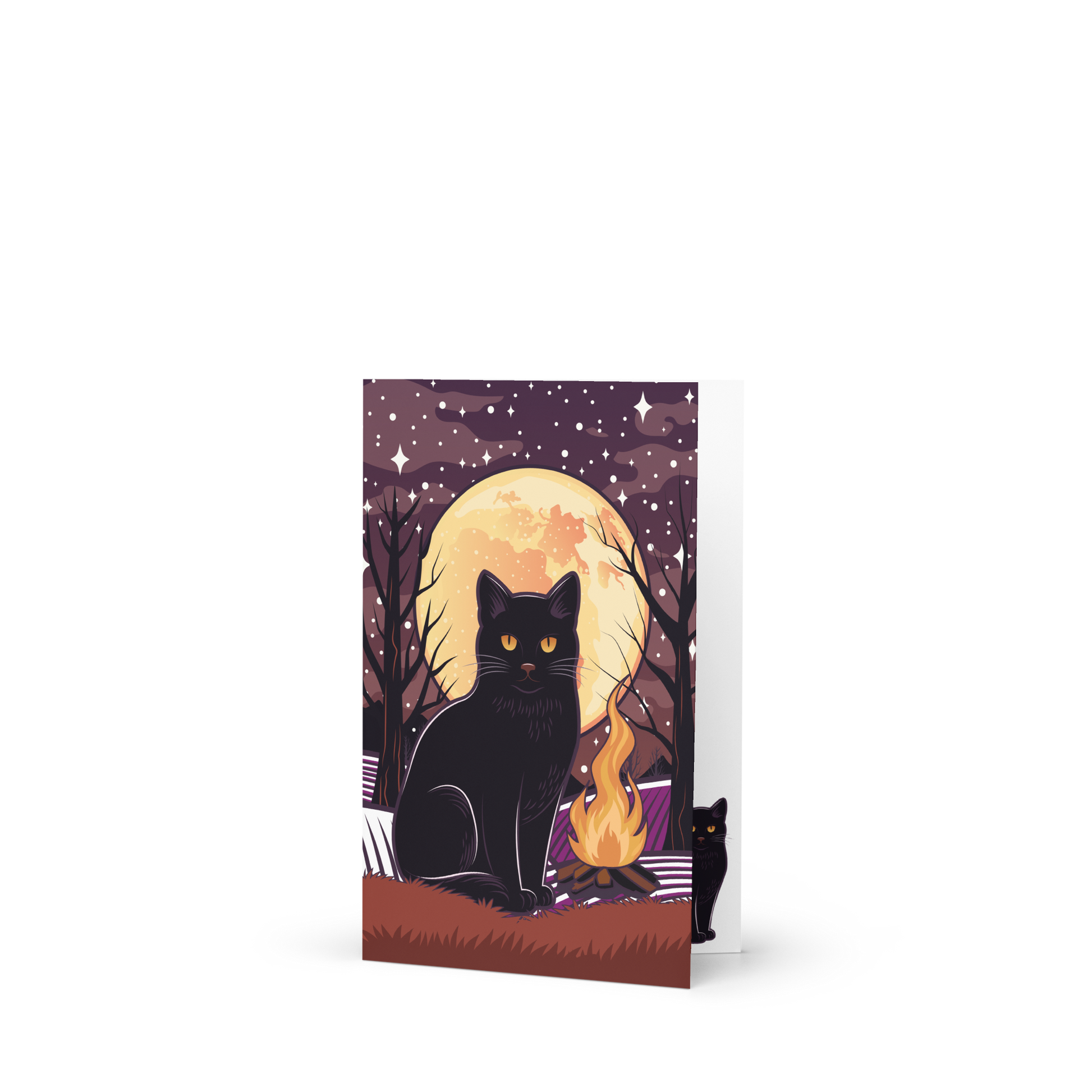 Our Samhain Greeting Card carries that quiet, thoughtful energy — a black cat keeping watch beside the fire under a full, glowing moon. Send it to a friend who honours the season, tuck it into an altar, or frame it as a small piece of art.